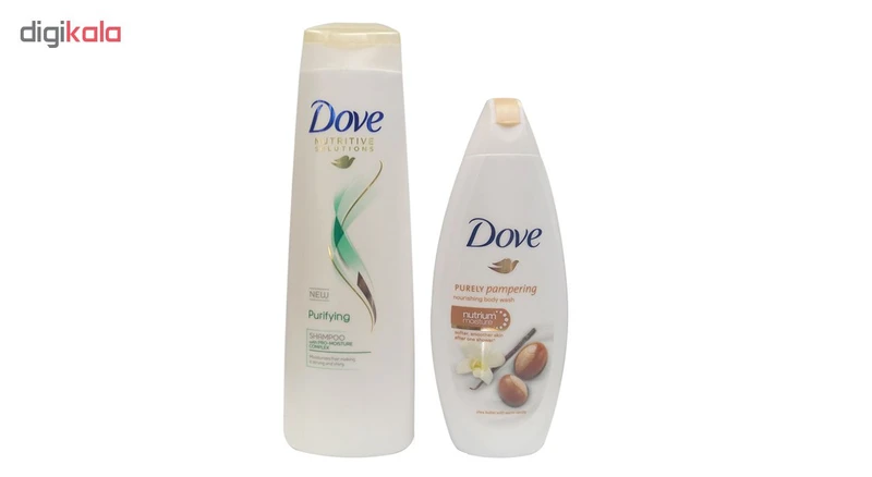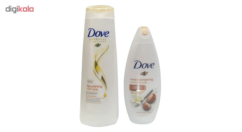 شامپو موی داو مدل nourishing oil care حجم 400 میلی لیتر به همراه شامپو بدن داو مدل purely حجم 250 میلی لیتر