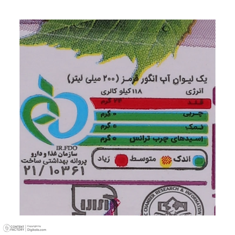 آب انگور قرمز تکدانه حجم 200 میلی لیتر