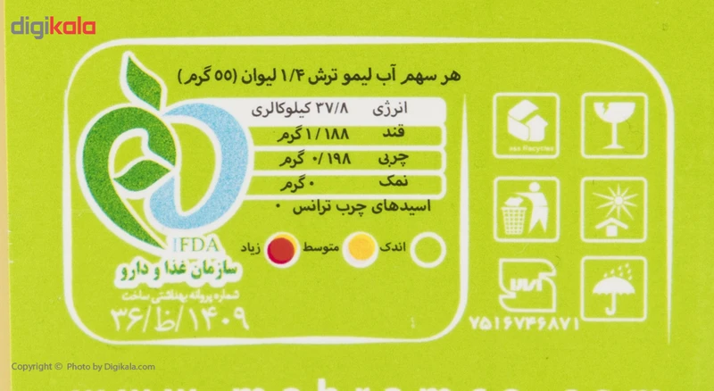 با شروع شدن فصل گرما و تابستان استفاده از آبلیمو و درست کردن شربت یا ریخت چند قطره آبلیمو در غذا، علاوه بر ضد عفونی کردن از گرمازدگی نیز جلوگیری خواهد کرد. آبلیمو 0.5 لیتری مهرام انتخابی خوشمزه و سالم برای ذائقههای ایرانی است. آبلیموی مهرام در یک بطری شیشهای قرار گرفته که در هر 1.4 لیوان از آن 37.8 کیلوکالری انرژی، 1.188 گرم قند، 0.198 گرم چربی دارد و فاقد نمک و اسیدهای چرب ترانس است. آبلیموی مهرام میتواند طعم و عطر غذاهای شما را چندین برابر کند.