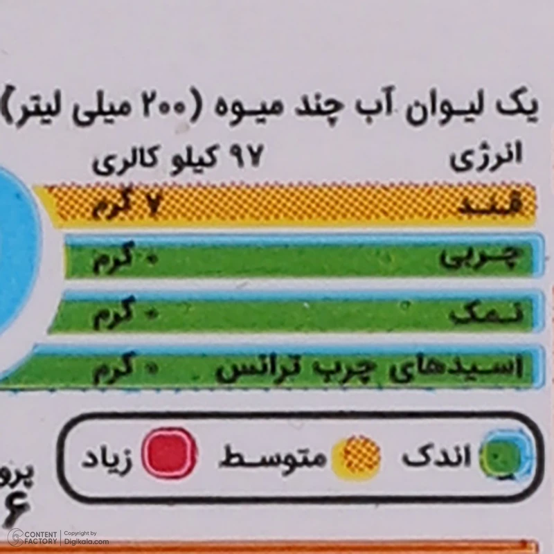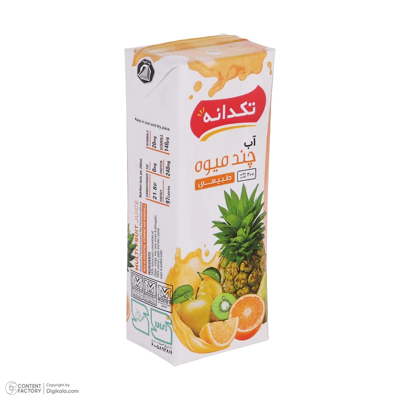 آب چند میوه تکدانه حجم 200 میلی لیتر