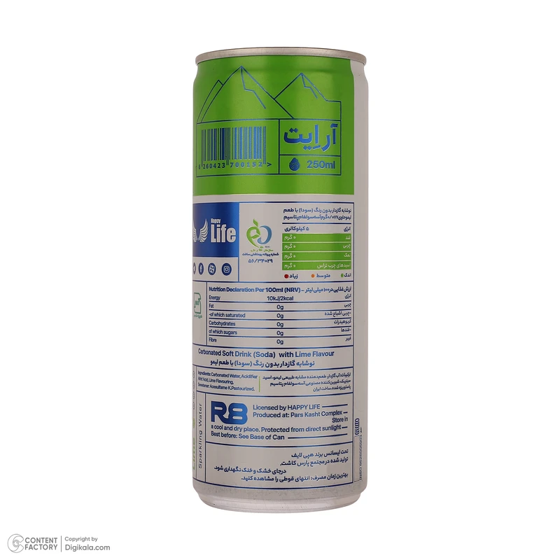 آب گازدار با طعم لیمو R8 لایف – 250 میلی لیتر