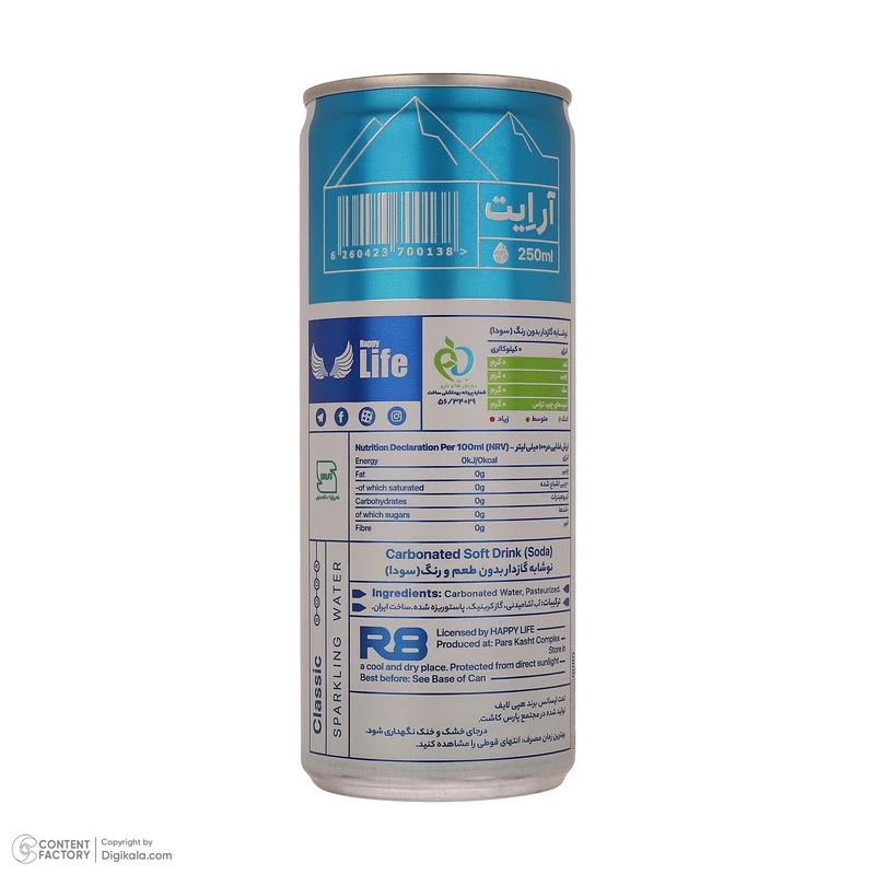 آب گازدار کلاسیک بدون کالری R8 لایف – 250 میلی لیتر