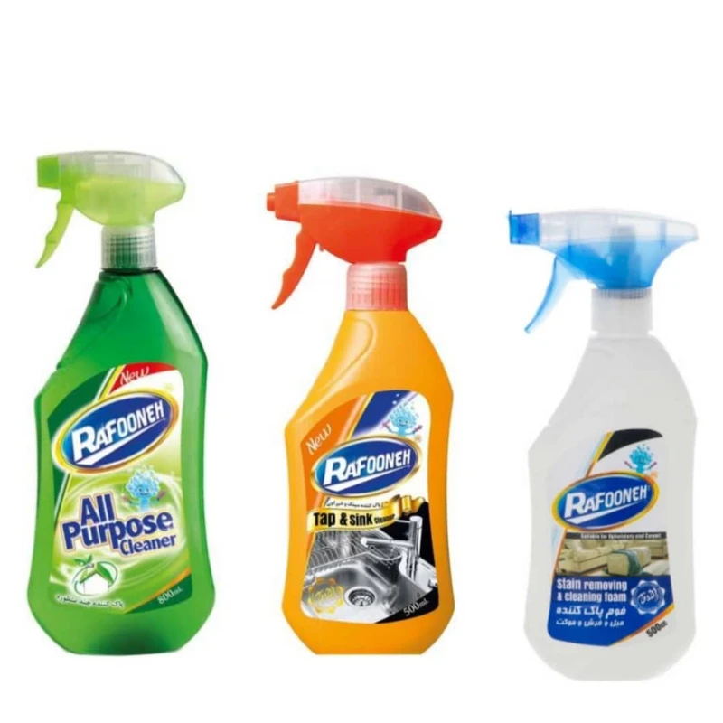 اسپری پاک کننده چند منظوره رافونه حجم 500 میلی لیتر به همراه فوم لکه بر مبل و فرش و اسپری سینک و شیر الات مدل 2154