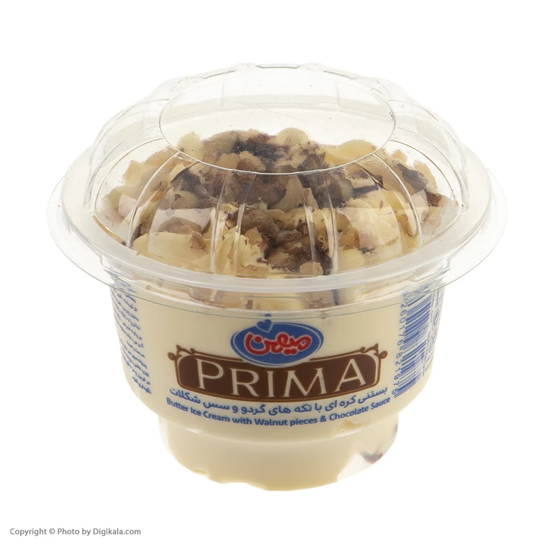بستنی کرهای با تکههای گردو و سس شکلات میهن – 170 میلی لیتر