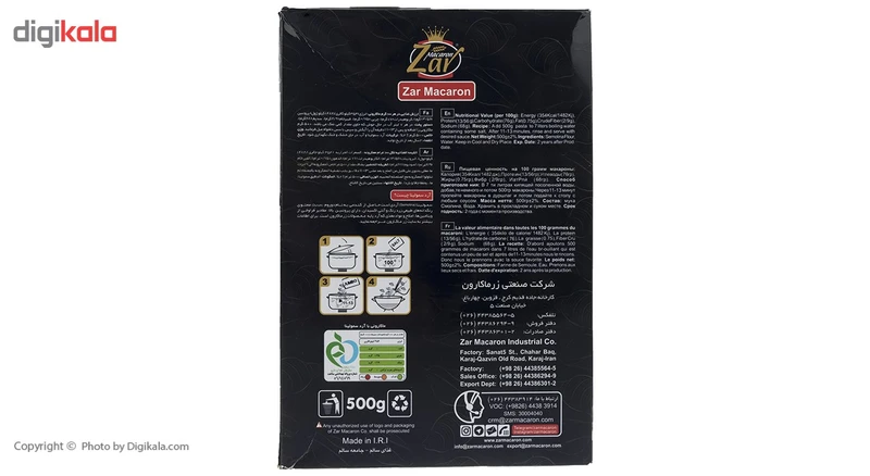 ماکارونی، اسپاگتی و پاستا، از آرد سمولینا تهیه می‌شوند و پس از آماده شدن خمیر، آن را به شکل‌های مختلفی درمی‌آورند تا جذاب‌تر شود و مخاطبان بیشتری را جذب کند. این غذای لذیذ یک منبع سرشار از کربوهیدرات است که می‌تواند بخش زیادی از انرژی بدن را تأمین کند و درصورتی‌که زیاد استفاده شود، می‎تواند موجب افزایش وزن شود. جامبو شلز سبزیجات 500 گرمی «زر ماکارون» با ترکیبی از پودر اسفناج و پودر طبیعی فلفل تولیدشده است تا طعم لذیذتری داشته باشد. اگر می‌خواهید تجربه جدیدی از ماکارونی‌ها داشته باشید، جامبوشلز زرماکارون گزینه مناسبی است و اگر از این غذا زده شده‌اید، جامبو سبزیجات می‌تواند نظر شمارا تغییر دهد. این جامبو شلز در هر 100 گرم حاوی 354 کیلوکالری انرژی، 13.58 گرم پروتئین، 76 گرم کربوهیدرات، 0.75 گرم چربی، 2.9 گرم فیبر و 681 میلی‌گرم سدیم است.