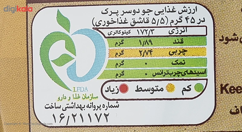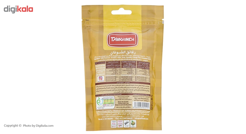 این محصول جو دوسر پرک برند «ترخینه» مقدار 200 گرمی است که در بستهبندی با ابعاد 19.5 × 12.5 × 6 سانتیمتر عرضه میشود. شرکت «ترخینه» با توجه به اینکه پیشگام در صنعت غلات است، این محصول با ارزش غذایی بالا را فرآوری و بستهبندی کرده و در بستهای کاملا بهداشتی و منطبق با آخرین تکنولوژی جهانی در صنعت بستهبندی و به عنوان محصول جدید خود وارد بازار کرده است. جو دوسر پرک برند «ترخینه» یک ماده غذایی عالی است و بسیار سریع میپزد. ارزش غذایی در هر 45 گرم جو دوسر پرک «ترخینه» برابر با 172.3 کیلوکالری انرژی، 1.89 گرم قند، 2.74 گرم چربی بوده و فاقد نمک و اسیدهای چرب ترانس است.