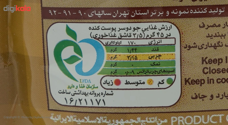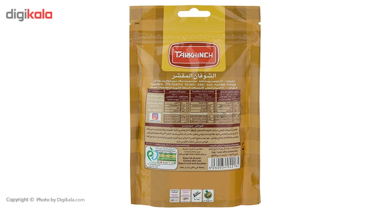 این محصول جو دوسر پوست کنده برند «ترخینه» مقدار 200 گرمی است که در بستهبندی با ابعاد 19.5 × 12.5 × 6 سانتیمتر عرضه میشود. جو دوسر پوست کنده «ترخینه» از نظر چربی، پروتئین، فسفر، آهن، کلسیم، ویتامینهای گروه A و B بسیار غنی است. ارزش غذایی در هر 45 گرم جو دوسر پوست کنده «ترخینه» برابر با 170 کیلوکالری انرژی، 1.44 گرم قند، 2.15 گرم چربی، 0.009 گرم اسیدهای چرب ترانس بوده و فاقد نمک است. جو دوسر پوست کنده برند «ترخینه» یک ماده غذایی عالی است و بسیار سریع میپزد. شرکت «ترخینه» با توجه به اینکه پیشگام در صنعت غلات است، این محصول با ارزش غذایی بالا را فرآوری و بستهبندی کرده و در بستهای کاملا بهداشتی و منطبق با آخرین تکنولوژی جهانی در صنعت بستهبندی و به عنوان محصول جدید خود وارد بازار کرده است.