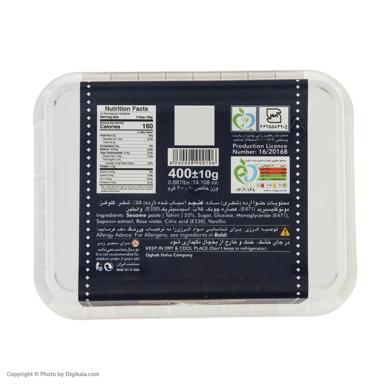 یکی از بهترین حلواشکریهای «عقاب» در یک بستهبندی محکم عرضه شده است. درپوش عقاب 400 گرمی به راحتی و با جدا کردن قسمتی که برش خورده، از بدنه جدا میشود. با وجود چنین بستهبندی هوشمندانهای نیاز به دربازکنهای دستوپاگیر نخواهید داشت. روی بدنه و درپوش محصول، نشان تجاری عقاب به زیبایی چاپ شده است. تصور کنید مخلوط چند مادهی غذایی بسیار مقوی و پرانرژی را در آغاز هر روز میل میکنید. بدون شک پس از مدت کوتاهی انرژی و هیجانی که در تمام روز احساس میکنید، شما و اطرافیانتان را شگفتزده خواهد کرد. وقتی اولین تکه از این محصول را میل کنید، بهسرعت متوجه حجم بالایی از انرژی و هیجان خواهید شد. این انرژی بالا از موادی ازجمله کنجد آسیاب شده 50 درصد، شکر، گلوکز، مونوگلیسیرید، اسید سیتریک، هل و وانیل تأمین میشود. پس از استفاده از این محصول با توجه به چربی 10 گرمیاش، احساس خمودگی و سنگینی نخواهید داشت. برای برنامههای پیادهروی سبک و حتی کوهنوردی، استفاده از این حلواشکری بهعنوان یک میان وعده توصیه میشود. میزان انرژی این محصول برابر با 160 کیلوکالری است. وزن بستهبندی برابر با 435 گرم است. با توجه به این وزن، میتوانید حلواشکری را در کنار وسایل پیکنیک خودتان به همراه داشته باشید. تنها نکتهای که برای ماندگاری این محصول باید رعایت کنید این است که عقاب ساده را در جای خشک و خنک نگه دارید. خرید و مصرف حلواشکری عقاب با در نظر داشتن حجم متوسط، برند شناختهشده، کیفیت ساخت بالا، مواد بهکاررفتهی مرغوب و بستهبندی شیک و محکمش برای شما بسیار لذتبخش خواهد بود.