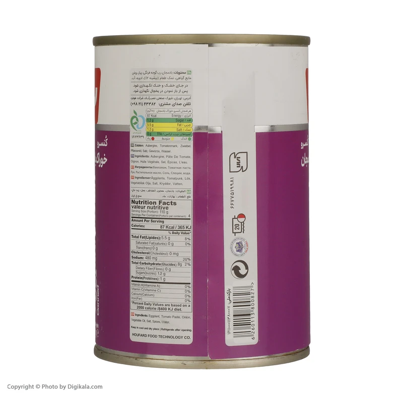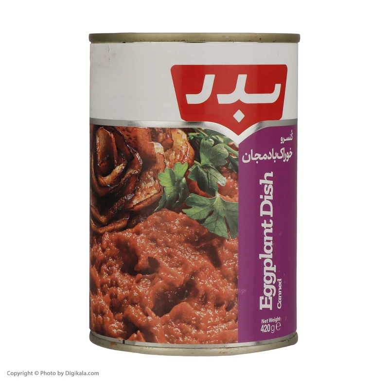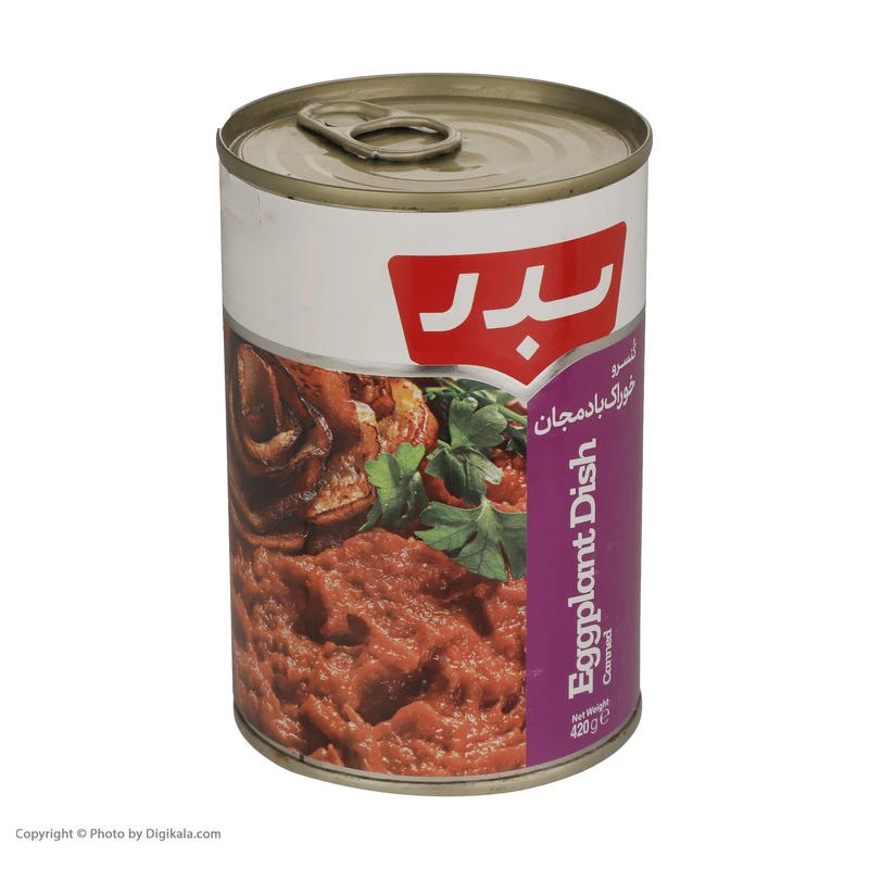کنسرو خوراک بادمجان بدر غذایی خوشمزه و لذیذ است که توانسته در بین تمام افراد خانواده حتی کودکان طرفداران زیادی پیدا کند. خوردن هر روزه غذای فوری برای بدن شما تبعات زیادی به دنبال خواهد داشت. جالب است بدانید بادمجان سرشار از فسفر، ویتامین های بی، ویتامین ای، آهن و … می باشد. در بادمجان بیوفلاونوئید و ویتامین K وجود دارد که این ویتامین ها از لخته شدن خون جلوگیری می کنند و سبب تقویت مویرگ ها می شوند. برای تمام افراد زمان هایی پیش می آید که فرصتی برای تهیه و پخت غذا نیست و خرید کنسرو خوراک بادمجان یا دیگر کنسروهای غذایی کاملاً بهصرفه بوده و از نظر سلامتی نیز خیال شما راحت خواهد بود. در پخت کنسرو خوراک بادمجان بدر از کمترین چربی و نمک استفاده شده است تا تمام افراد با هر ذائقه ای بتوانند از آن میل کنند. برای مصرف این خوراک کافی است آن را گرم کرده و با نان یا برنج نوش جان نمایید.