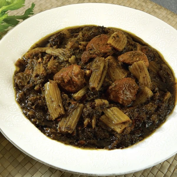 گوشت و روغن و کرفس و نعناجعفری با کمی آبغوره و ادویه، ترکیبی میسازند سبز و رویایی که در روزهای تابستان و زمستان، شیرینی و شادی میآورد؛ بس که سبزیجات این خورش، مفید و طعمش، دلچسب است. هم طبع آشفتهی آدم را معتدل میکند، هم گرسنگی و خستگی را فرو مینشاند. فقط حواس آشپز باید وقت خُرد کردنِ کرفس و تفت دادن، جمع باشد که کرفس باید حدود دوبند انگشت ریز شودد و نباید زیاد تفت داده شود که خاصیتش از بین میرود و طعمش تلخ میشود. قدیمیها در خواص کرفس بسیار گفتهاند؛ از جمله آن که سنگ مثانه را از بین میبرد و برای سردمزاجها بهدردخور است. انواع درد شکم و پهلو را دوا میکند و درمان کماشتهایی و بدغذایی است. گوشت قرمز هم چنانچه در خواص انواع خورشها گفتیم، مفید حال زحمتکشان و خستههای این دنیاست و اگر بهقاعده و درست مصرف شود، ضد کمخونی و بیحالی است. سنگینی حاصل از زیاد خوردن گوشت را نعنای موجود در خورش، تسکین میدهد؛ پس با خیال آسوده، پلوخورش کرفس را لقمهلقمه تناول کنید. نوش جان و گوارای وجود