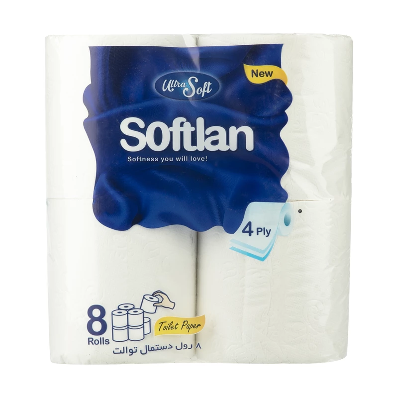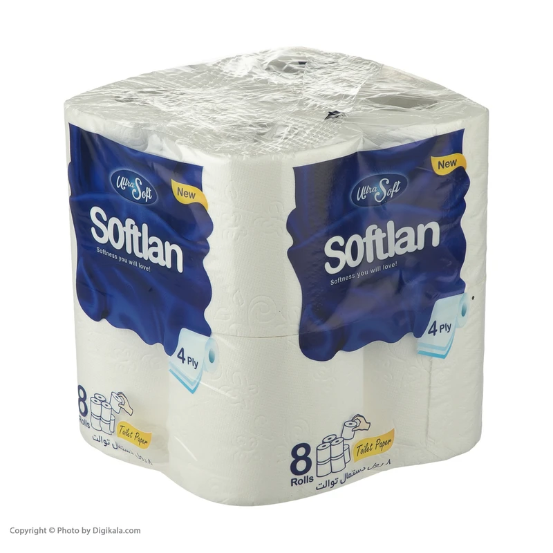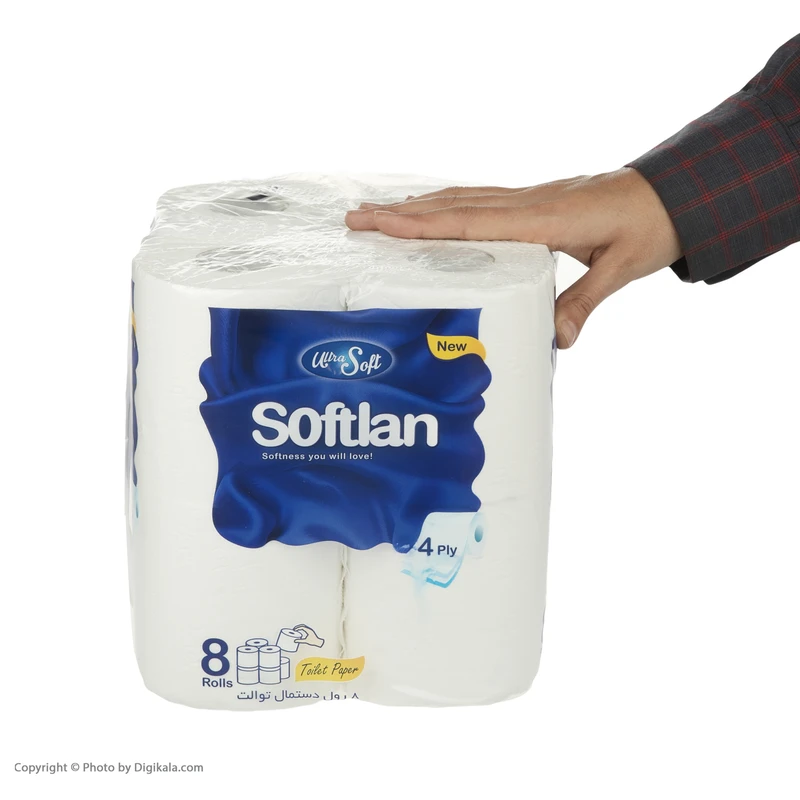 بسته‌بندی دستمال توالت سافتلن به صورت 8 عددی عرضه می‌شود. این بسته‌بندی شامل 8 رول دستمال توالت سافتلن است که هر رول دارای 125 برگ با ابعاد 12.5 در 10.5 سانتی‌متر و 4 لایه است. این بسته‌بندی محصولات بهداشتی و سلولزی سافتلن، که دارای ویژگی‌های نرمی، پرفراژ و قدرت جذب بالا است، مناسب برای استفاده در حمام و توالت‌ها است.