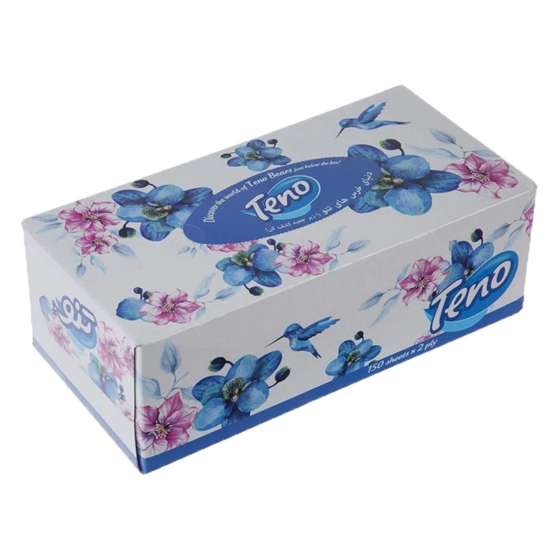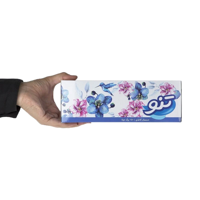 یک بسته دستمال‌کاغذی تنو 150 عددی، شامل دولایه است که به‌خوبی قدرت جذب دارد و بسیار نرم و لطیف است.