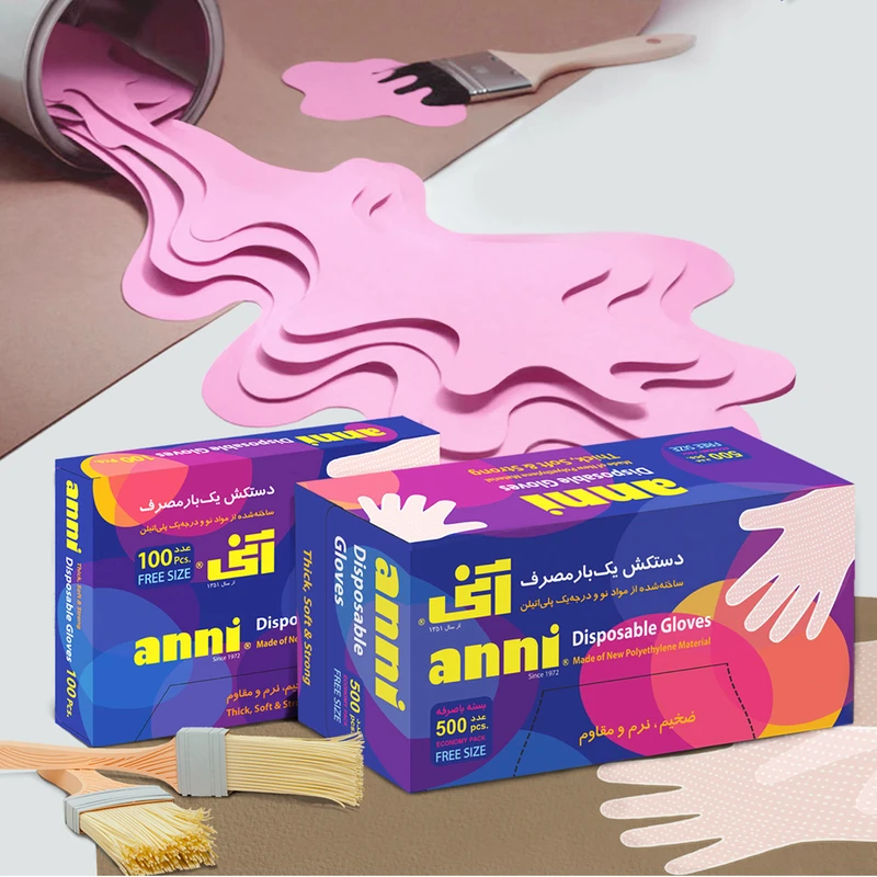 دستکش یک‌بارمصرف نایلونی آنی، تولیدشده از پلی‌اتیلن درجه‌یک غذایی، به دلیل فرمولاسیون خاص این محصول، مقاوم و نرم‌تر از محصولات مشابه هستند، دستکش یک‌بارمصرف آنی بیش از 40٪ ضخیم‌تر از استاندارد ملی ایران است.