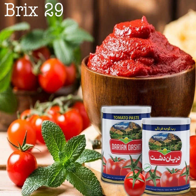 رب گوجهفرنگي800 گرمي دریان دشت با بالاترین غلظت غذای شما را خوش طعم و خوشمزه می کند. یکی از خاص ترین مزیت رب های دریان دشت بریکس و غلظت بالایی است که محصولات غذایی دریان دشت را کاملا به صرفه میکند. رب يکي از چاشنيهاي پر کاربرد در خانههاي ايراني است. اين چاشني تأثير زيادي در رنگ و طعم غذاها دارد. استفاده از يک رب خوشمزه و باکيفيت نه تنها مزه غذايي که درست ميکنيد را چند برابر دلچسب تر ميکند، از ديگر ويژگيهاي مطلوب اين محصول، سهولت بازکردن آن است؛ پس بايد عضوي ثابت در يخچال شما باشد. رب گوجهفرنگي ميتواند به غذا رنگ و طعم بينظيري بدهد يا برعکس رنگ آن را سياه و طعم آن را نامطلوب کند؛ پس در انتخاب ربگوجهفرنگي دقت بيشتري به خرج دهيد تا بتوانيد غذاي لذيذي آماده کنيد. اين رب ترکيبي از گوجهفرنگي و نمک است که در هر 30 گرم 34 کيلوکالري انرژي و 0.33 گرم چربي دارد. صنایع غذایی دریان دشت همواره بر اين تلاش است که با حفظ حداکثر خواص مفيد گوجهفرنگي محصولي سالم، خوشرنگ و خوشطعم با غلظتی مناسب را توليد و بستهبندي کند.