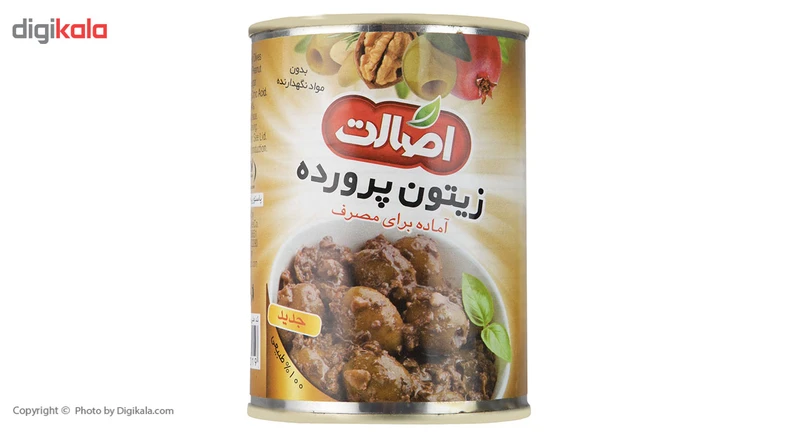 محصولی که میبینیم زیتون پرورده برند «اصالت» مقدار 360 گرمی است که در قوطی فلزی با ابعاد 10 × 7 × 7 سانتی متر ارائه شده است. وزن این بستهبندی 445 گرم بوده و حاوی 360 گرم زیتون پرورده است. درب محصول دارای قفل آسان بازشو است. این محصول از مواد مرغوب تهیه شده و صد در صد طبیعی بوده و فاقد مواد نگهدارنده است. زیتون پرورده از ارزش غذایی بالایی برخوردار بوده، سرشار از ویتامین E و سایر آنتیاکسیدانهای مفید است.