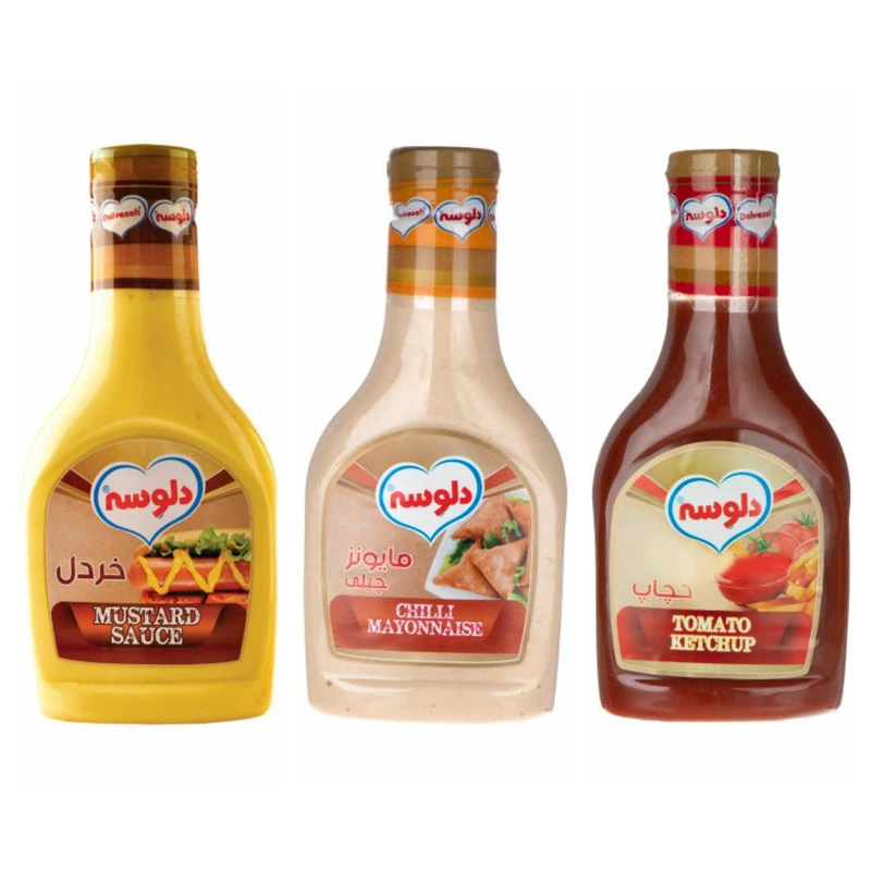 سس خردل و کچاپ و مایونز چیلی دلوسه – 480 گرم بسته 3 عددی