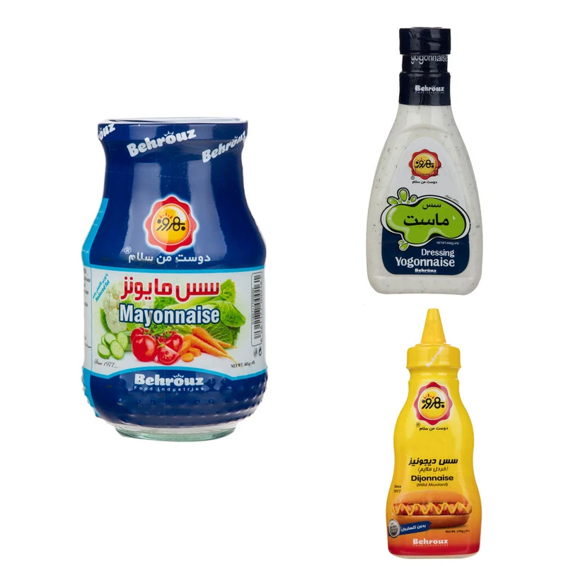 سس خردل- 270 گرم و سس ماست- 410 گرم و سس مایونز- 485 گرم بهروز بسته 3 عددی