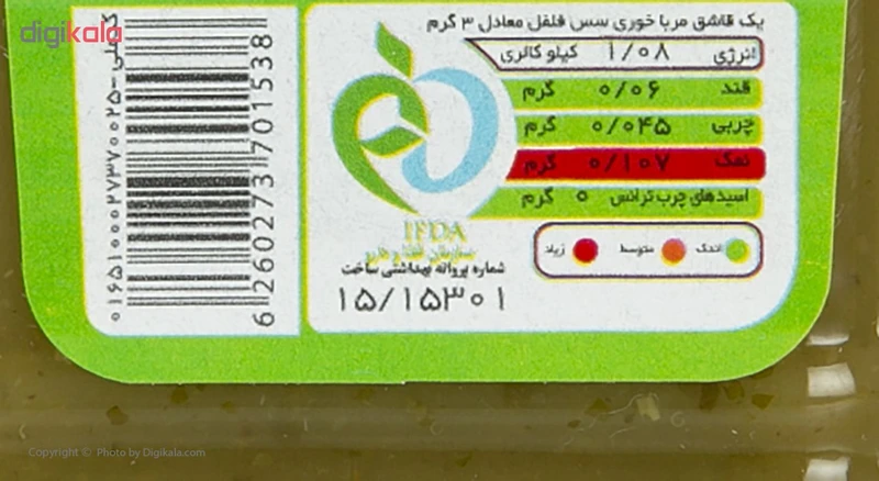 سس فلفل سبز تند اصالت مقدار 200 گرم