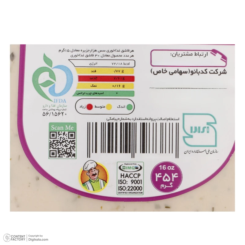 اولین کسی باشید که دیدگاهی می نویسد “سس هزار جزیره دلپذیر – 454 گرم”