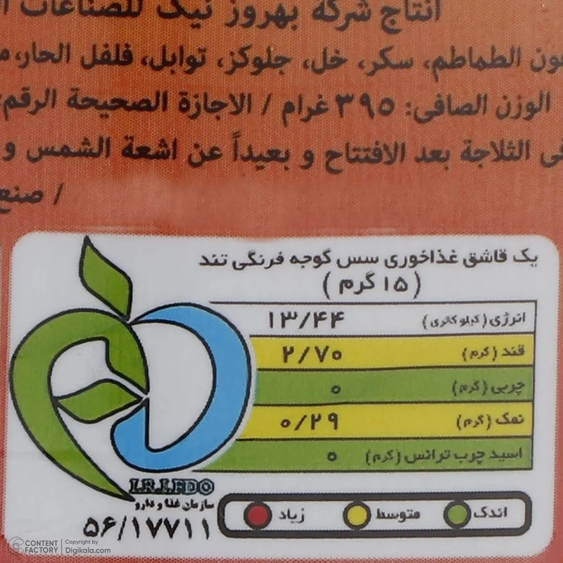 سس گوجه فرنگی تند بهروز – 395 گرم