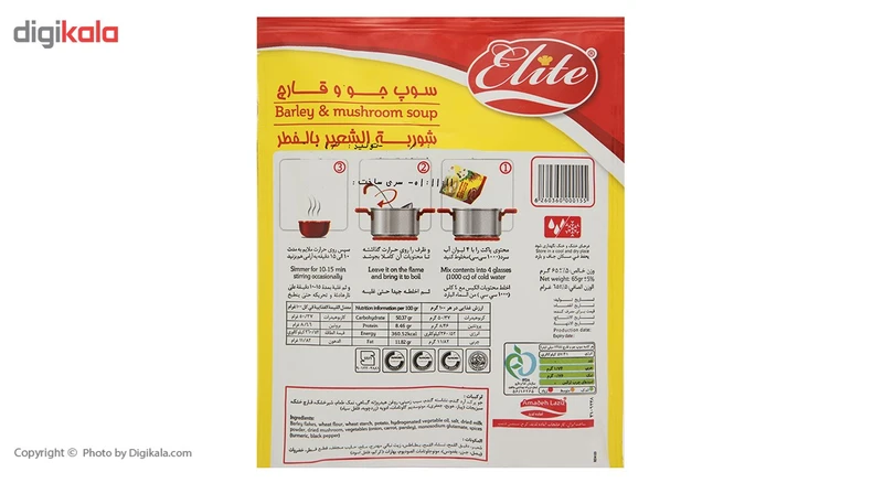 سوپ نیمه آماده جو و قارچ الیت مقدار 65 گرم