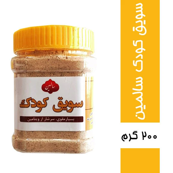 سویق کودک سالمین جزو سویق های ترکیبی می باشد این سویق از لحاظ محتویات دارای تمامی مواد غذایی مورد نیاز برای کودکان در حال رشد می باشد و موجب رشد بی نظیر کودک می باشدو باعث روییدن گوشت در بدن می شود و باعث استحکام استخوان بندی در کودک می شود و این محصول جزو بهترین و سالم ترین و کاملترین غذاهای کودک به حساب می آید لازم است مادران عزیز این محصول