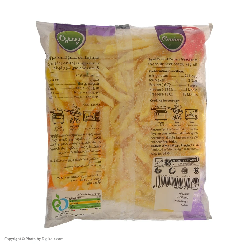سیب زمینی سرخ کرده یخ زده پمینا مقدار 750 گرم