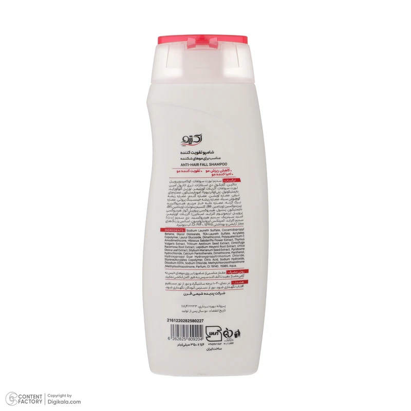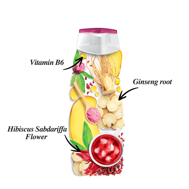 شامپو تقویت کننده و ضد ریزش اکتیو با فرمولاسیون ویژه حاوی ویتامین های B5 وB6 ، ریشه جنسینگ و گل چای قرمز برای کمک به ترمیم و تقویت موهای شکننده و ضعیف فرموله شده است.