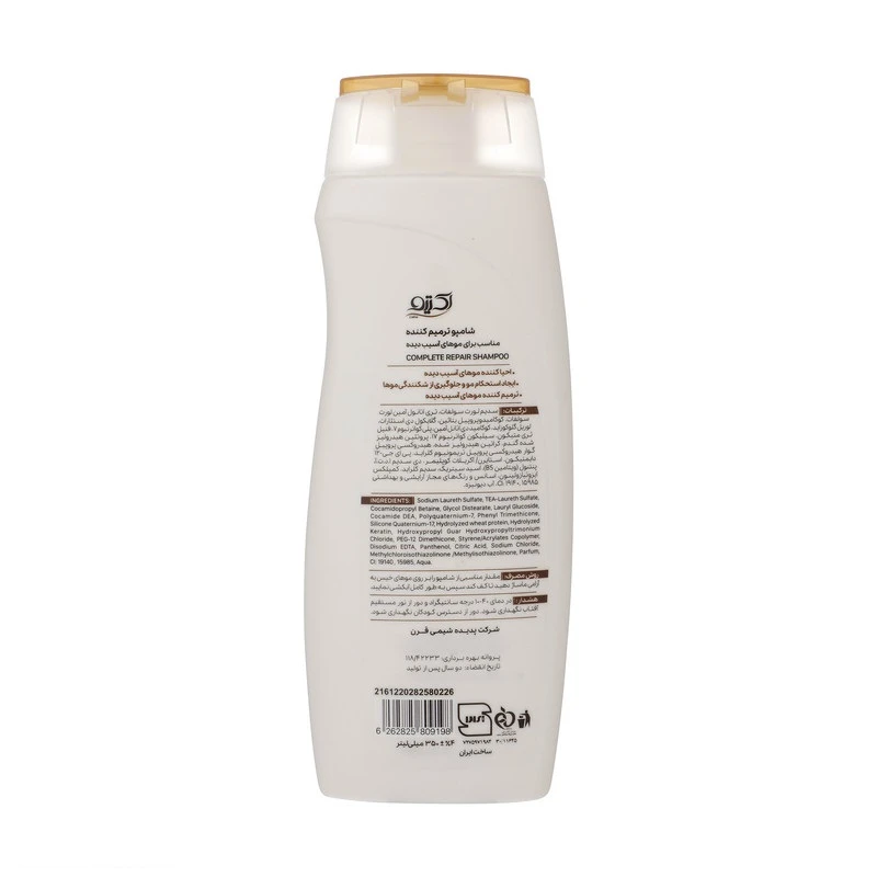 شامپو ترمیم کننده 350 میلی لیتر اکتیو مناسب موهای آسیب دیده که قابیلت تقویت کنندگی، ترمیم داخلی مو و نفوذ فایبر اکتیو ها به منافذ مو را داراست. همچنین موجب احیا موهای آسیب دیده و ایجاد استحکام در تارهای مو نیز می گردد.شامپو ترمیم کننده موهای آسیب دیده اکتیو، پنج مشکل موهای آسیب دیده چون:موخوره،موهای ضعیف،موهای زبر،موهای مات بدون درخشندگی و موهای فاقد رطوبت را مرتفع می نماید.