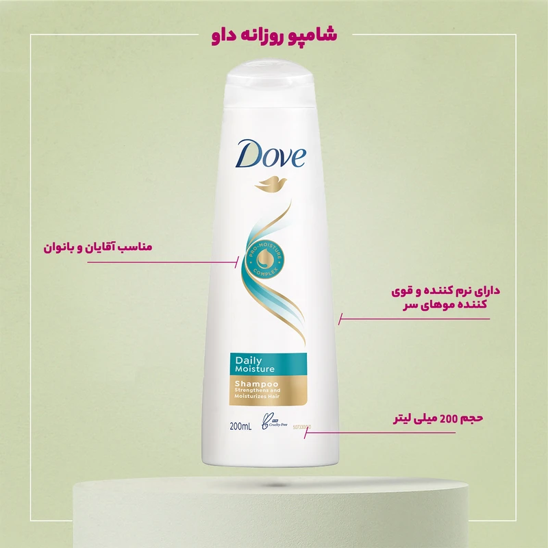 شامپو مخصوص استفاده روزانه داو مدل Daily Moisture حجم 200 میلی لیتر