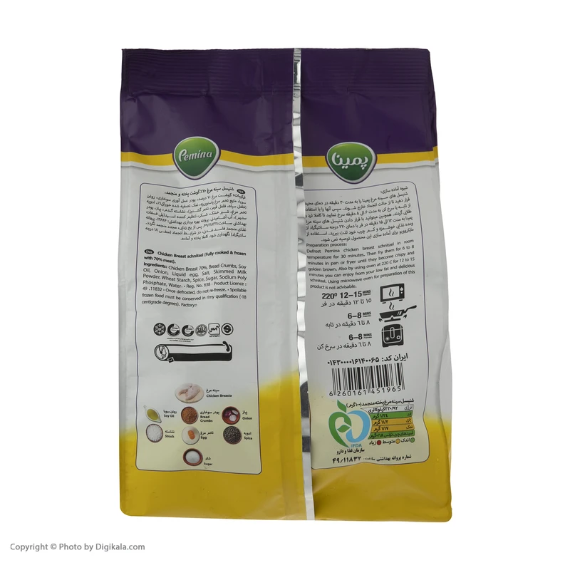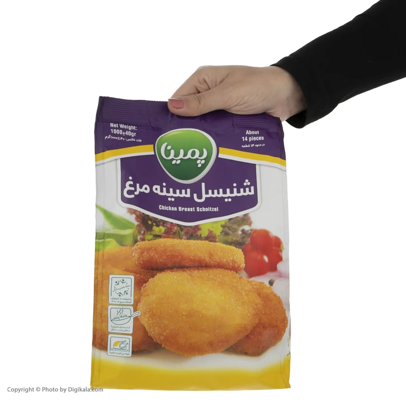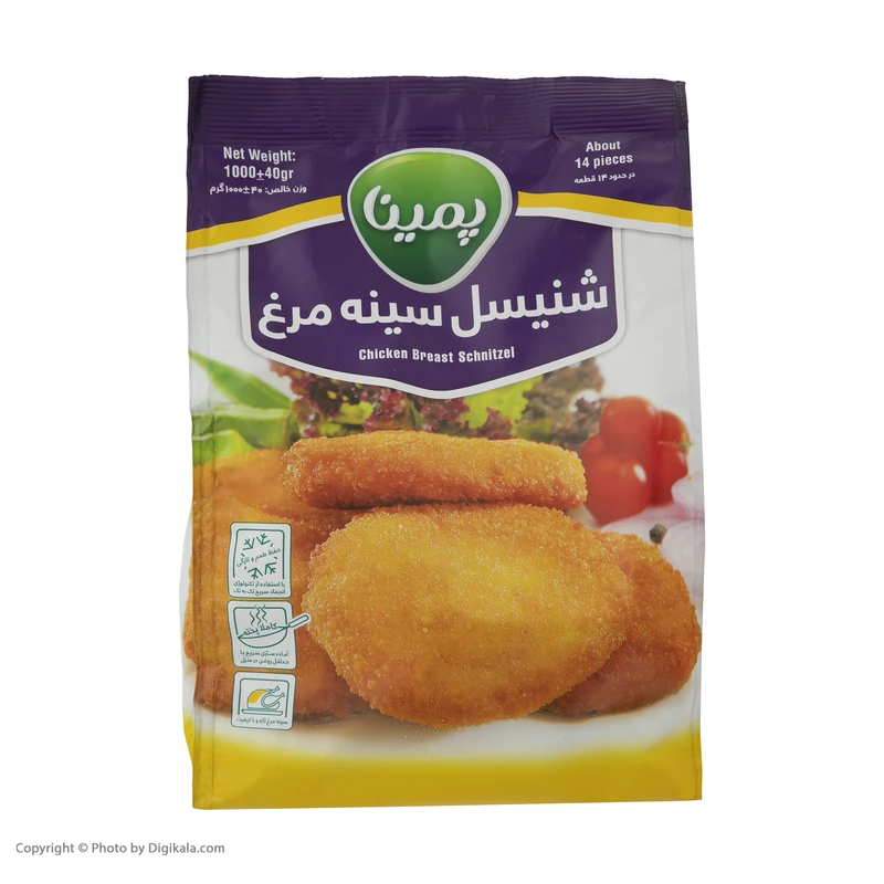 شنیسل سینه مرغ مهمانی منجمد پمینا مقدار 1000 گرم