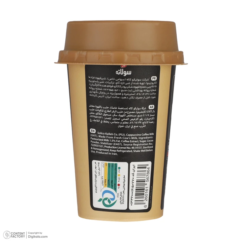سولاته کاپوچینو کاله یکی محصولات کارخانه کاله است که کار خود را از سال 1369 در زمین تولید فرآوردههای لبنی آغاز کرده. سولاته از ترکیب دو کلمه سو و لاته ساخته شده است، که لاته یک نوع قهوه است و سو همان برند سولیکو کاله است. سولاته در واقع همان قهوه آماده است که میتوانید آن را به صورت گرم یا سرد میل کنید. کاپوچینو یکی از لذیذترین ترکیبات قهوه است که به دلیل کافئین بالایی که دارد از آن به عنوان نوشیدنی محرک و انرژی زا یاد میشود. پایه این نوشیدنی اسپرسو است و برای تزئین آن از پودر قهوه و یا خامه استفاده میشود. تنها تفاوت کاپوچینو با قهوه ترکیب کف شیری است که کاپوچینو باید داشته باشد. برای اینکه بتوانید یک روز با انرژی داشته باشید این نوشیدنی، یکی از بهترین نوشیدنیهایی است که مصرف آن همراه با صبحانه باعث میشود روز با نشاط و خوبی را سپری کنید و تا چند ساعت انرژی داشته باشید