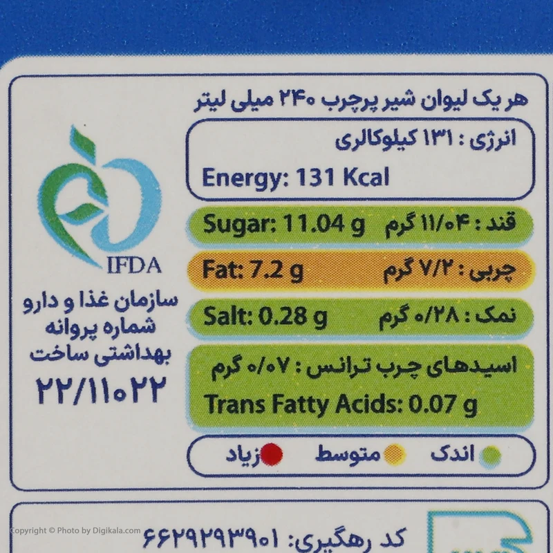 شیر پرچرب دومینو – 1 لیتر بسته 4 عددی بسیار با کیفیت و خوشطعم است که با فرآیند حرارتی استرلیزه (فرادما) تولید میشود. این شیر با بستهبندی پاکتی و شماره پروانه بهداشت 22/11022 از سلامت و ایمنی خود اطمینان میدهد. این شیر با حجم 1 لیتر و بستهبندی 4 عددی، مناسب برای مصرف خانوادگی است. همچنین دارای مقادیر مناسبی از انرژی، قند، چربی، نمک و اسیدهای چرب ترانس است که برای رشد و نگهداری بدن لازم هستند. هر یک لیوان شیر پرچرب 240 میلی لیتر دارای 131 کیلوکالری، 11.04 گرم قند، 7.2 گرم چربی، 0.28 گرم نمک و 0.04 گرم اسیدهای چرب ترانس است.