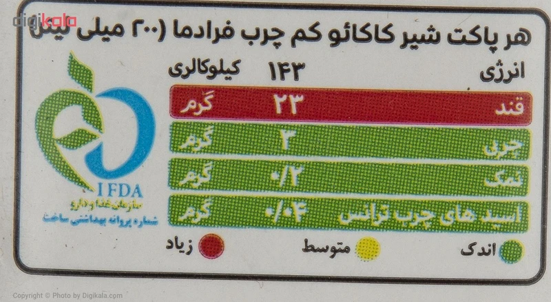 شیر کاکائو پگاه مقدار 0.2 لیتر