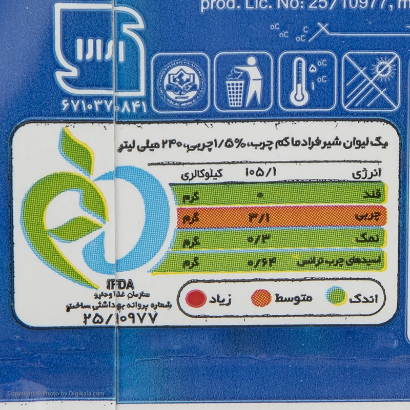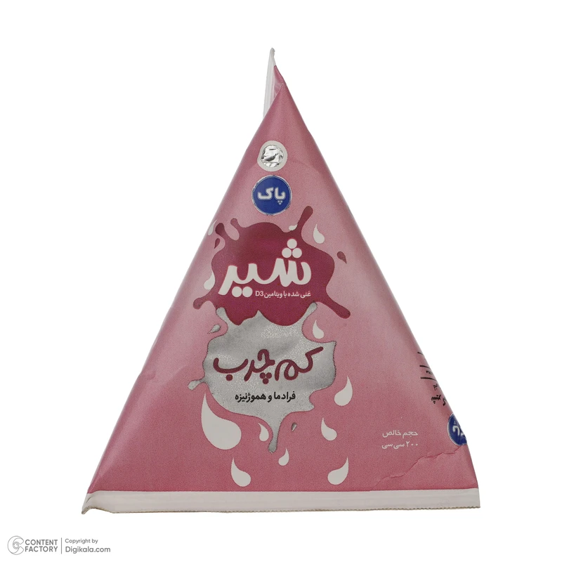 شیر کم چرب پاک – ۲۰۰ میلی لیتر یک منبع عالی از ویتامین و مواد معدنی به ویژه کلسیم است که برای سلامت استخوانها بسیار اهمیت دارد. این محصول دارای ۲۵/۱۰۹۷۷ شماره پروانه بهداشت است و باید در یخچال نگهداری شود. مصرف شیر به صورت روزانه به خصوص برای کودکان، فواید بسیاری را به دنبال دارد.