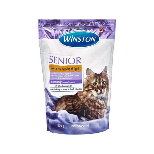 غذای خشک گربه وینستون مدل سینیور مانسب برای گربه های بالای 8 سال محصول کشور آلمان / از سن 8 سالگی به بعد فعلیت بدنی آن ها کاهش میابد و متابولیسم کاهش میابد این غذا خشک با انرژی و پروتئین تنظیم شده می نواند نیاز های گربه شما را تامین کند