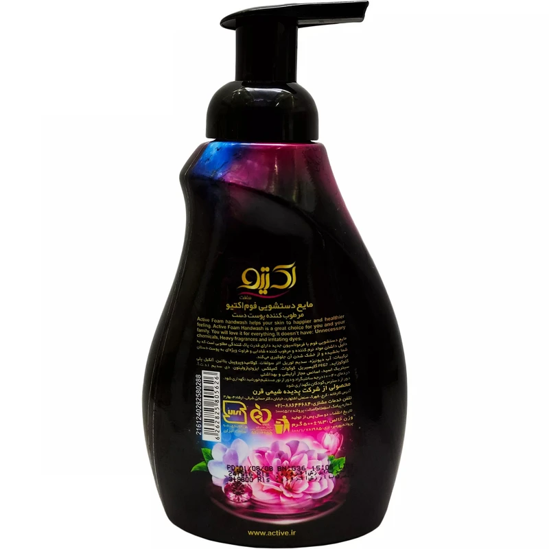 مایع دستشویی فوم 500 گرمی اکتیو، باقدرت پاککنندگی مطلوب، حاوی نرمکننده گلیسیرین است که این ماده به علت جذب بالای رطوبت، بهعنوان یک مرطوبکننده عالی، به نگهداری و احیای رطوبت پوست کمک کرده و نرمی و لطافت پوست را تأمین و از خشک شدن آن جلوگیری میکند.در عملکرد این محصول، پمپ آن نقش مهمی را ایفا کرده و سبب میشود مایع بهصورت کف خارج شود و از لای انگشتان نلغزد که این ویژگی این محصول را نسبت به سایر مایعات دستشویی متمایز میکند.