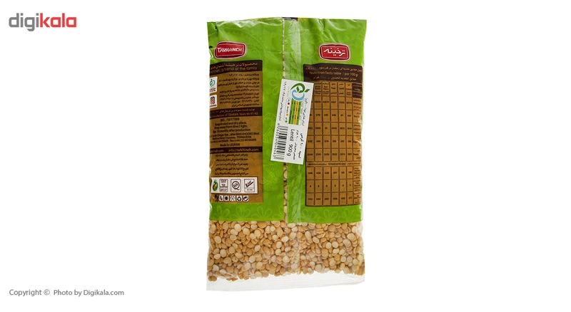 این محصول لپه برند «ترخینه » مقدار 900 گرمی است. لپه جزو حبوبات و از دسته نخود است. میزان سدیم موجود در لپه پایین بوده، با وجود این از میزان پتاسیم بالایی برخوردار است. به دلیل میزان بالای پروتئین موجود در لپه، این دانه گیاهی مفید، جایگزین بسیار مناسبی برای گوشت خواهد بود و از این رو مصرف آن برای افرادی که بایستی از مصرف گوشت خودداری کنند، مناسب است. لپه علاوه بر پروتئین، حاوی نشاسته هم هست. این محصول در بسته‌بندی پلاستیکی با ابعاد 24 × 13 سانتی‌متر عرضه می‌شود. ارزش غذایی لپه در هر 100 گرم از این محصول، برابر با 387.76 گرم انرژی، 3.88 گرم قند، 6.44 گرم چربی، 0.13 گرم نمک بوده و فاقد اسیدهای چرب ترانس است.