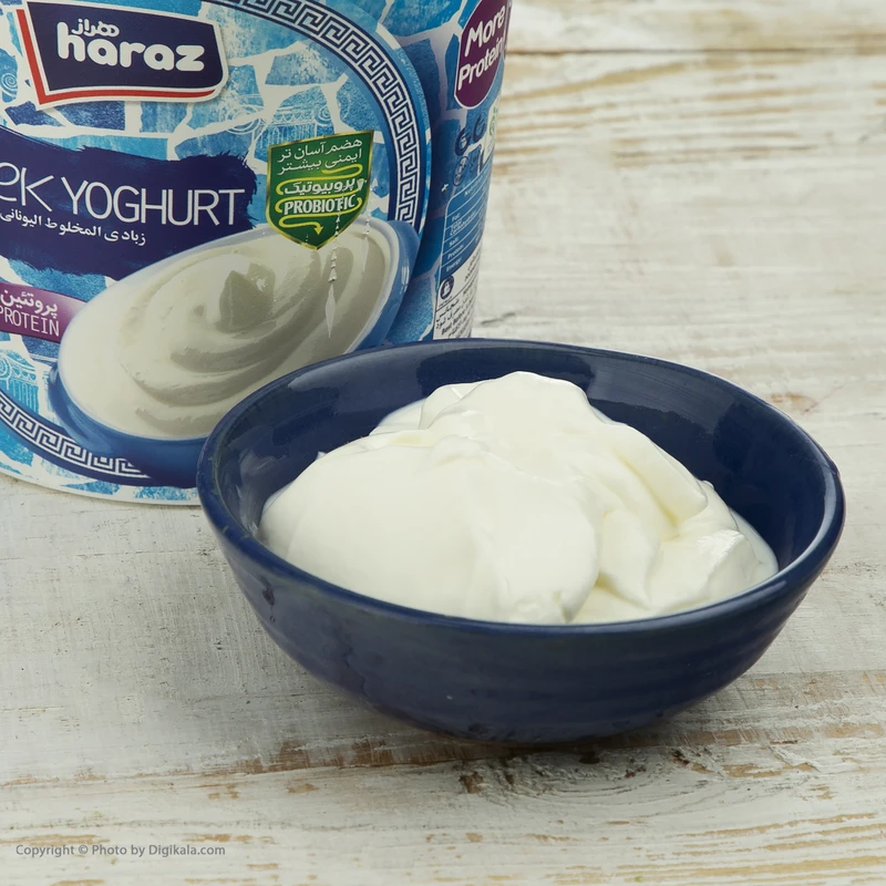 ماست یونانی هراز- 1.5 کیلوگرم یکی از انواع ماست پرچرب است که با پروتئین بالا میتواند گزینهای مناسب برای استفاده در وعدههای غذایی مختلفتان باشد. این ماست میزان نمک اندکی دارد اما طعم آن رو به ترشی میزند، ازاینرو برای علاقهمندان به طعمهای شور یا ترش گزینهای مناسب بهشمار میآید. شما میتوانید از این خوراکی خوشمزه در انواع دیپها یا دسرهای غیررژیمی استفاده کنید و طعم و بافت فوقالعادهای را به آنها ببخشید؛ همچنین امکان استفاده از این ماست در کنار بسیاری از غذاها هم وجود دارد.