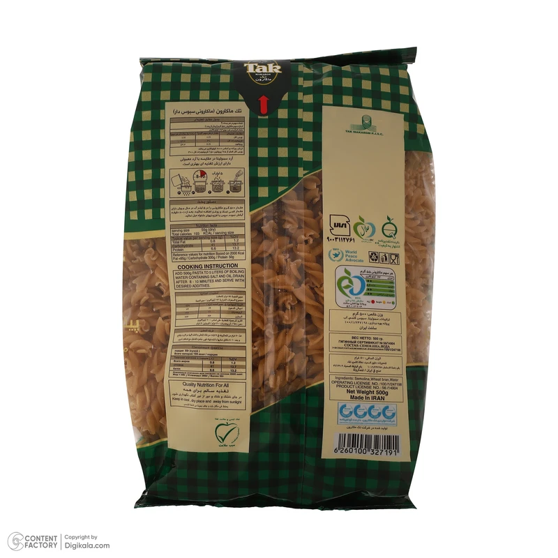 ماکارونیهای سبوسدار این روزها بسیار مورد توجه هستند و بهدلیل ساختاری که در تولید آنها بهکار رفته مغذیتر هستند. تنها فرقی که این نوع ماکارونیها با انواع معمولی معمولی دارند در رنگشان است. زیرا ماکارونی سبوسدار کمی تیرهتر از بقیه هستند. ماکارونی پیکولی سبوسدار «تک ماکارون» تولید شده با آرد سمولینا و سبوس گندم است که منبع غنی از انرژی و پروتئین است. ماکارونی پیکولی، همان پیچی قدیمی است که این روزها با این عنوان آن را میشناسید. برای آماده کردن غذا فقط کافی است یک بسته پاستا را داخل قابلمه ریخته و بعد از 8 الی 10 دقیقه با سس دلخواه خود نوش جان کنید. اگر برای یک وعده 500 گرم ماکارونی برایتان شما زیاد است، بستهبندی این محصول بهصورتی است که میتوانید مقداری که مدنظرتان بوده را استفاده کنید و با استفاده از چسبی که روی بستهبندی قرار دارد سر کیسه را ببندید.
