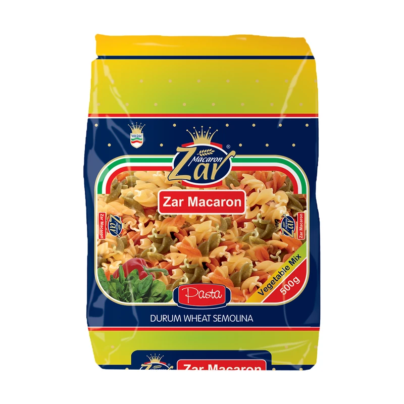 ماکارونی یکی از منابع غذایی سرشار کربوهیدرات است که آرد سمولینا ناشی میشود و در مدتزمان کوتاهی میتوان آن را آماده کرد. ماکارونی مخلوط سبزیجات زرماکارون 500 گرم وزن دارد و تنها در 10 دقیقه آماده میشود. برای تهیه ماکارونی پیچی زرماکارون، کافی است آن را در 5 لیتر آب جوش به مدت 10 دقیقه بجوشانید پسازآن میتوانید با مقداری مواد ماکارونی ترکیب کنید و میل کنید یا به شیوه سنتی، آن را دمکنید که برای دم کردن آن، به 30 دقیقه زمان نیاز است. این ماکارونی در هر 55 گرم حاوی 1.1 گرم چربی و 0.048 گرم نمک بوده و 199.65 کیلوکالری انرژی دارد. این ماکارونی به دلیل اینکه در ترکیب خود، پودر اسفناج و پاپریکا دارد، دانههای ماکارونی، رنگهای مختلفی دارند که علاوه بر جذاب شدن غذا، میتواند مقداری از مواد مغنی آنها را وارد بدن کند و جایگزین بخشی از ادویهها باشد.