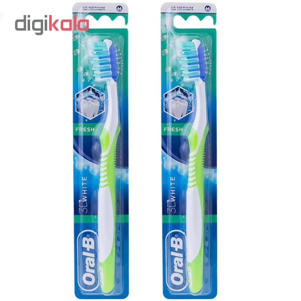 مسواک اورال-بی مدل 3D white با برس متوسط مجموعه 2 عددی