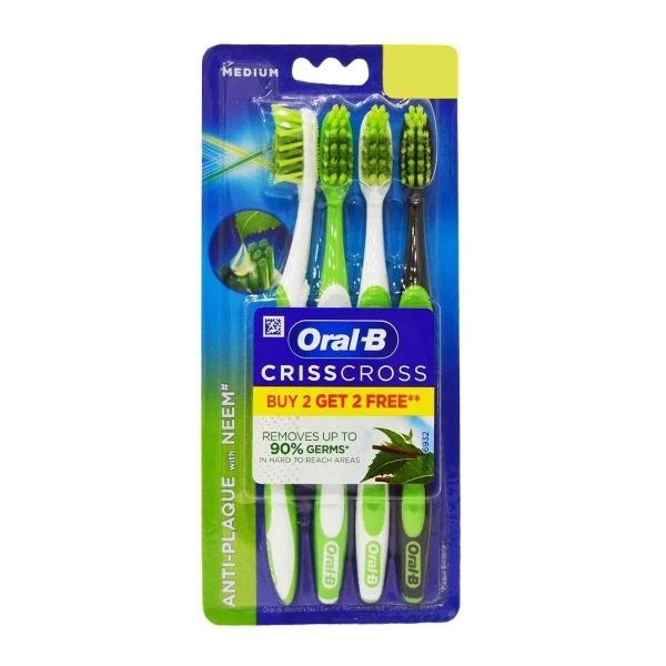 مسواک اورال-بی مدل CRISS CROSS ANTI-PLAQUE WITH NEEM با برس متوسط بسته 4 عددی