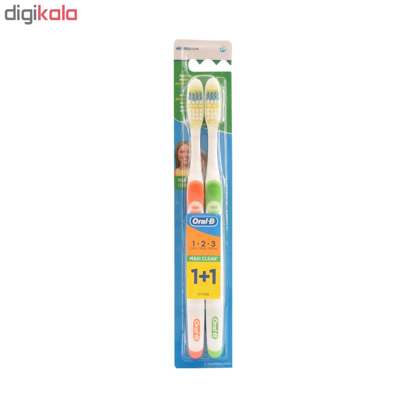 مسواک اورال-بی مدل MAXI CLEAN با برس متوسط بسته 2 عددی