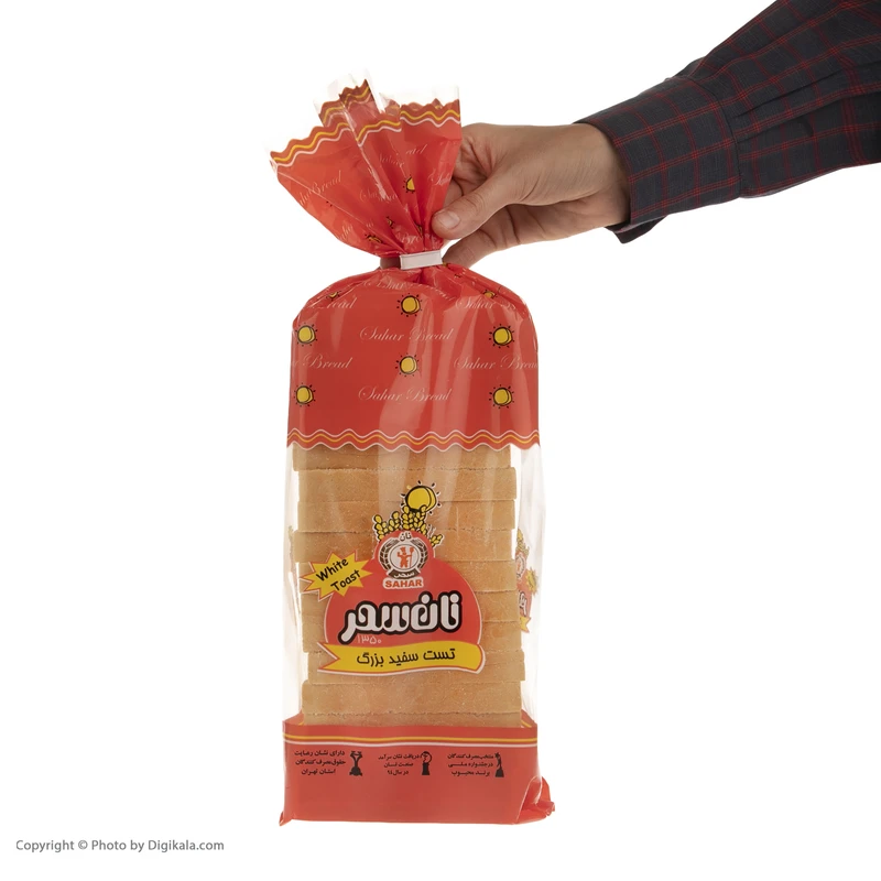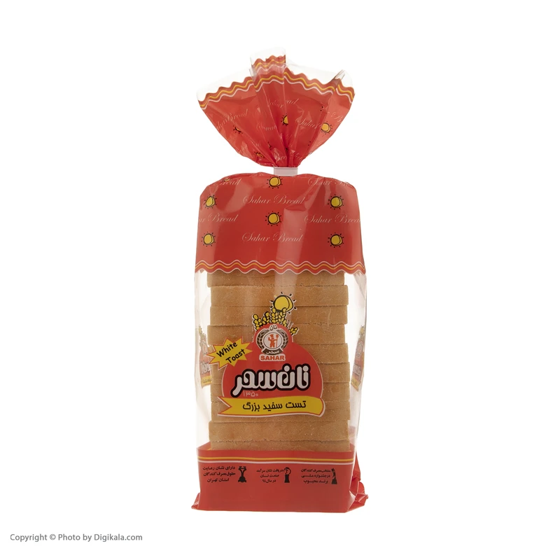 نان تست سفید بزرگ نان سحر دارای عطری دلپذیر، طعمی مطلوب و بافتی نرم، یکنواخت و منعطف بوده و از ماندگاری بالایی برخوردار است. مواد اصلی تشکیل دهنده این نان شامل آرد گندم، بهبود دهنده سحر، آرد سویا، شیر خشک، شکر، نمک، پرو بیونات، مخمر، روغن، آب و… هستند. به دلیل ارزش غذایی بالا، طعم خوب و بافت مناسبی که نان تست سفید نان سحر دارد، به راحتی میتوانید آن را با انواع غذاها و در تمامی وعدهها میل نمایید و از طعم بینظیر آن لذت ببرید.