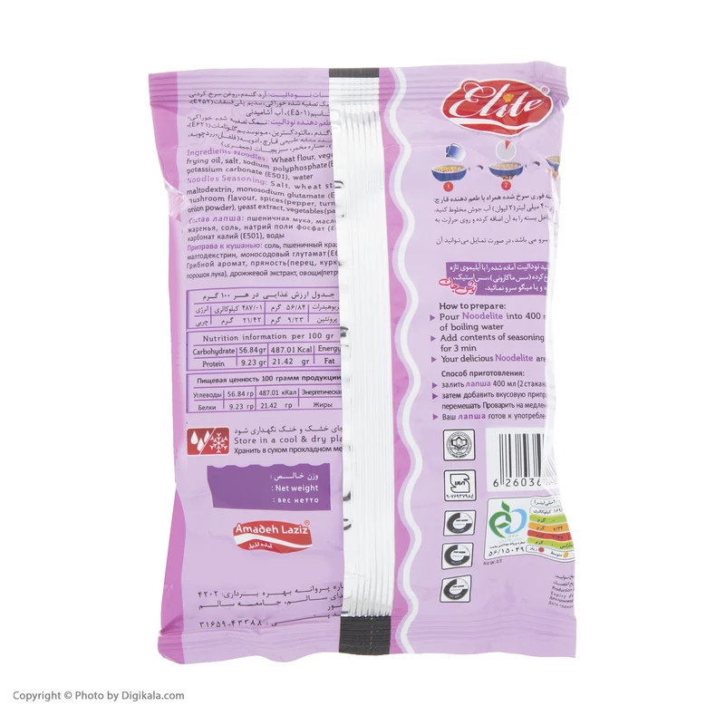 نودل با طعم قارچ و گوشت الیت – 75 گرم بسته 10 عددی