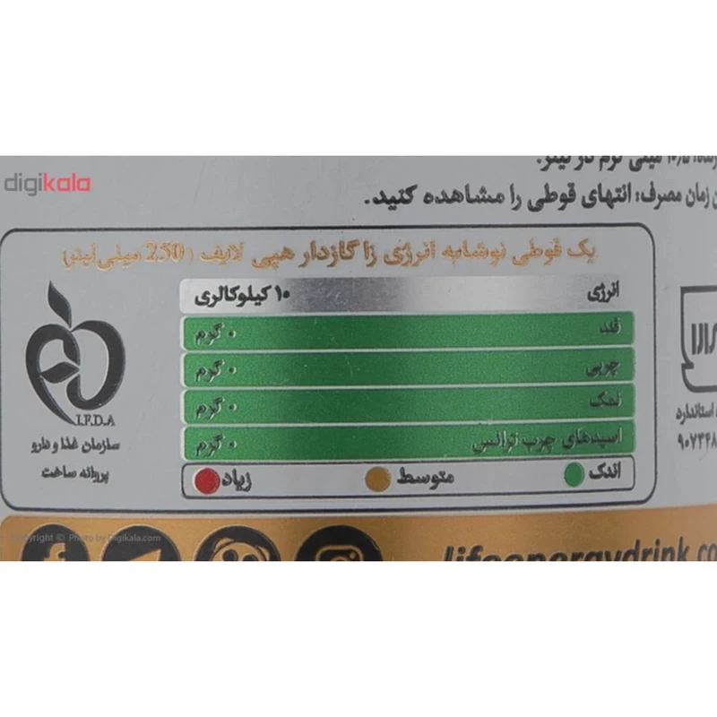 نوشابه انرژی زا بدون شکر لایف – 250 میلی لیتر بسته 12 عددی