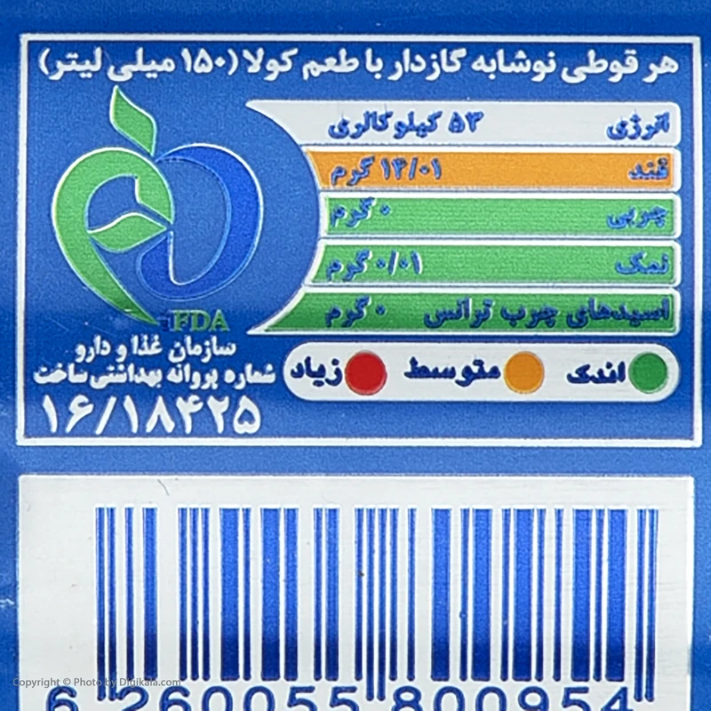 خواص و کالری نوشابه پپسی – ۱۵۰ میلی لیتر