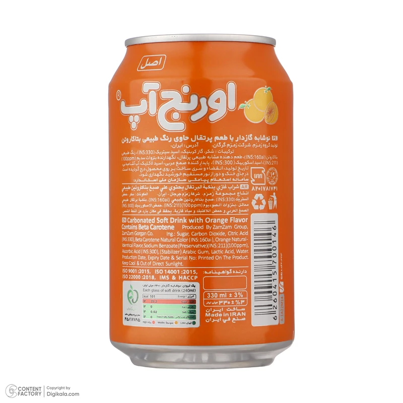 نوشابه گازدار با طعم پرتقال زمزم – 330 میلی لیتر