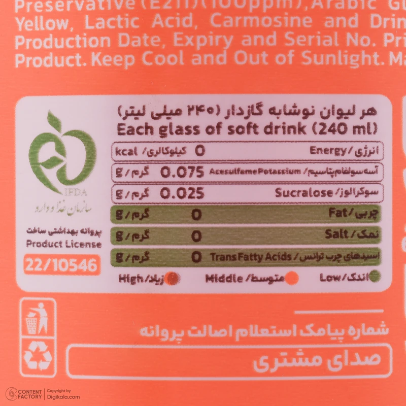 نوشابه گازدار زیرو با طعم پرتقال زمزم – 1.5 لیتر